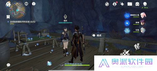 1、第一步,我们在荧光狭道右下的传送点与瑾武对话,她会让我们去信标处找志琼。