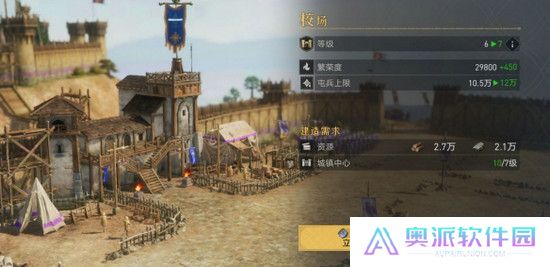 作为整个领地最重要的核心建筑,城镇中心中心的等级是其他所有建筑的上限。并且随着它的升级,我们还能开启更多的功能建筑,占领更多资源领地。包括至关重要的时代升级,也需要在城镇达到一定等级才能提升。