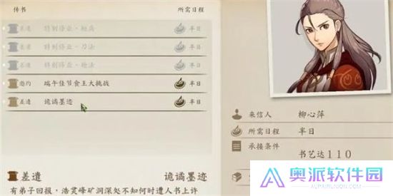 若书艺达110,开放传书任务“诡谲墨迹”,期限无。若此时没开启,在这之后书艺达110依旧可以开启。