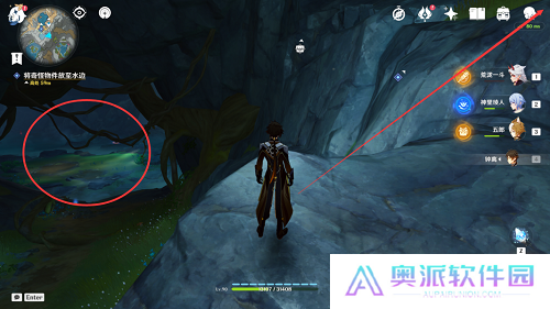 到达下方点位处,按红色箭头的路线,前往对面红圈处。