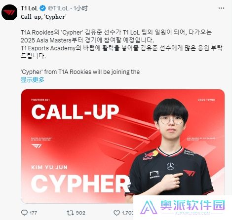 今日官方宣布了一则人员变动资讯:为了应对即将开始的亚洲大师赛,T1 Rookies(三队)的下路Cypher将上调至二队参与本次比赛。